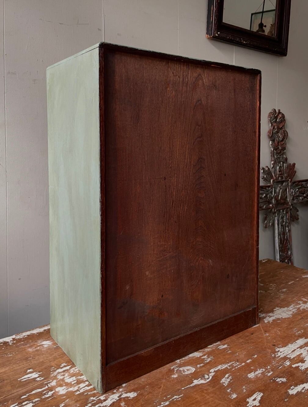 小窓に入ったプレスガラスとペールグリーンのペイントが特徴的です。