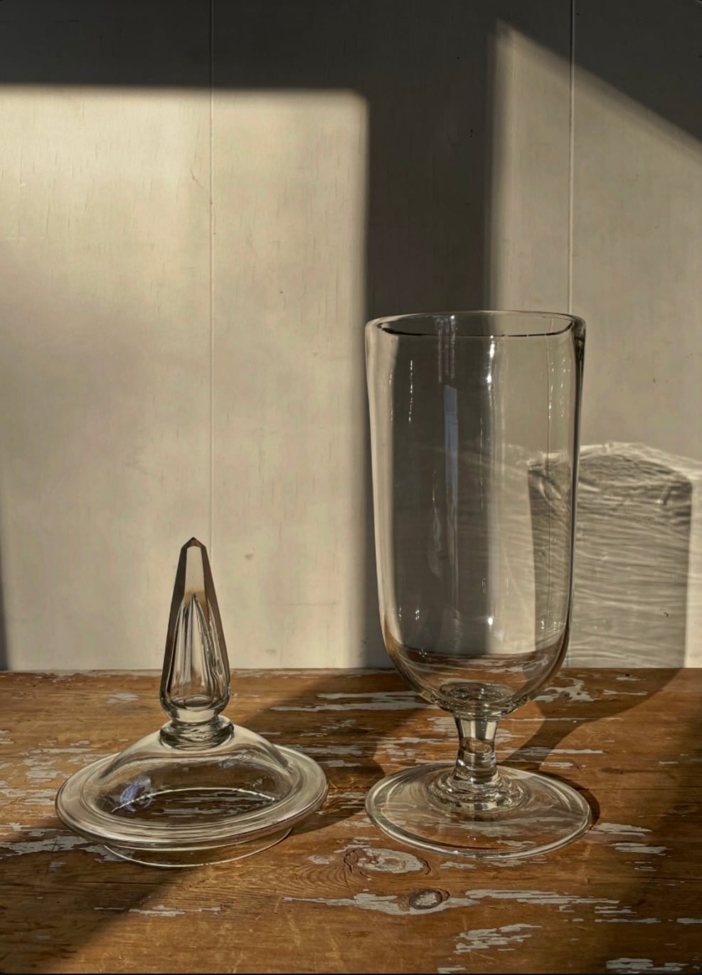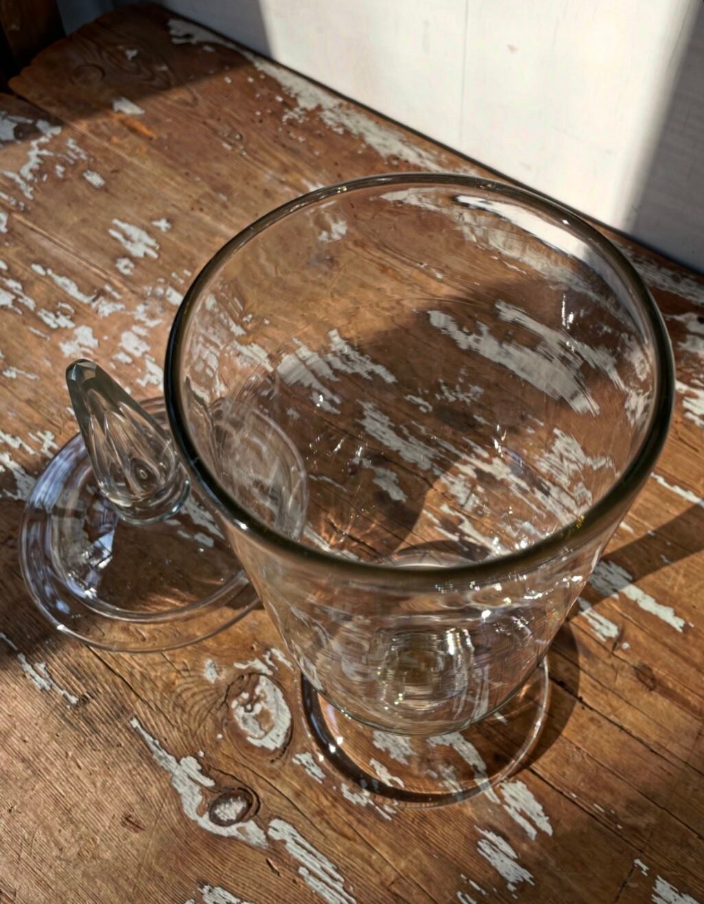 蓋のつまみが面取りされたガラスの剣先仕様です。